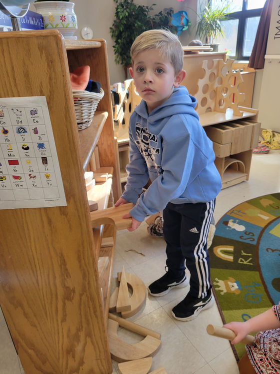 Our classes are comprised of mixed age groups: 18 months-36 months (ELP) and 3-5 years of age (Preschool). Research has demonstrated that classrooms composed of learners with a range of abilities and gifts will have measurable gains in leadership skills, prosocial behavior, independence and competence in cooperative learning abilities. Older learners nurture younger learners and all children benefit from collaborative learning strategies.